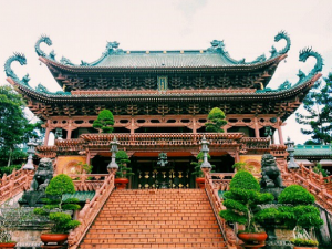 - Chùa Linh Phước – ngôi chùa còn có tên gọi khác là chùa “Ve Chai” bởi trong sân chùa có con rồng dài 49 mét được trang trí bề mặt bằng cả chục ngàn vỏ chai. Đây là công trình kiến trúc khảm sành đặc sắc của thành phố Đà Lạt.
