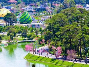 - Thành phố Đà Lạt, nằm trên độ cao 1500m so với mực nước biển, quanh năm mây mù bao phủ, Đà Lạt được mệnh danh là thành phố của tình yêu, của hoa và của mùa xuân. Đến Đà Lạt quý khách được trải nghiệm thời tiết bốn mùa trong một ngày: Sáng sớm với tiết trời xuân dịu nhẹ, trưa đến với ánh nắng mùa hè, chiều về với cơn gió lành lạnh, đêm xuống là cảm giác đông tràn qua từng con phố. Bước chân bên bờ Hồ Xuân Hương, nghe tiếng lục lạc ngựa vẳng trong gió, nhấp 1 ngụm café hương chồn, thật thú vị….